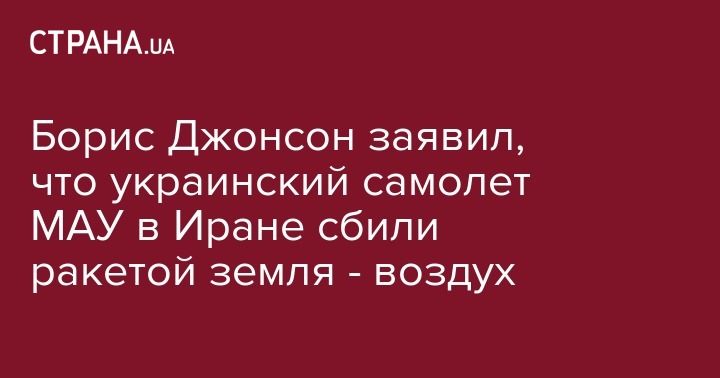 Борис Джонсон заявил, что украинский самолет МАУ в Иране сбили ракетой земля - воздух