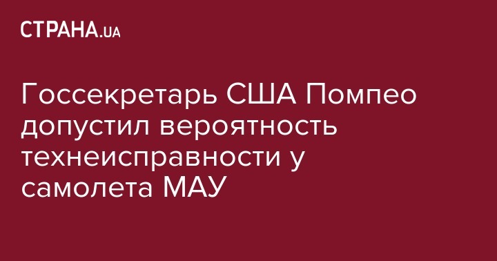 Государственный секретарь США Майкл Помпео заявил, что Америке пока неизвестна причина крушения украинского самолета в Иране. В то же время США допускают, что трагедия могла произойти из-за технической неисправности.