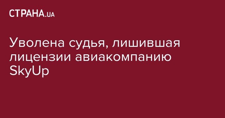 9 января Высший совет правосудия уволила судью Барышевского районного суда Киевской области Елену Литвиненко, которая вынесла решение о приостановлении лицензии авиаперевозчика SkyUp. Об этом сообщает "Радио Свобода".