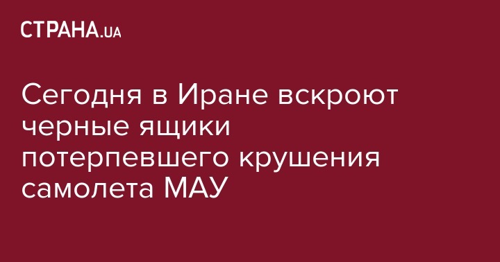 Уточняется, что информацию о том, что бортовые самописцы лайнера МАУ вскроют сегодня, 10 января, озвучил глава отдела расследования происшествий Организации гражданской авиации Ирана Хасан Резайефар. Также иранское телевидение уже показало черные ящики в эфире.