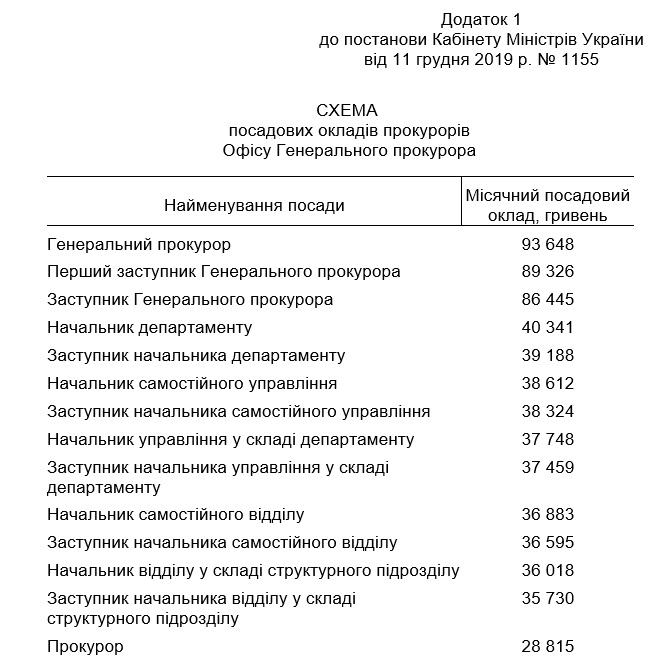Оклад прокурора Офиса Генеральной прокуратуры в соответствии с постановлением составляет 28,8 тыс. гривен.