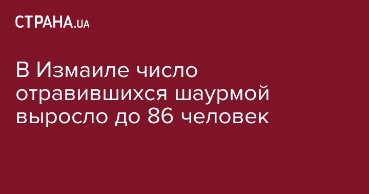 Как сообщала "Страна", 20 июля в инфекционную больницу Измаила попал 41 человек, в том числе 9 детей, с симптомами пищевой токсикоинфекции и острой кишечной инфекции. Все пострадавшие ели шаурму в фаст-фуде на одной из центральных улиц города – проспекте Суворова.