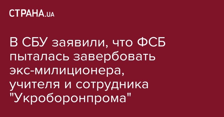 Сотрудники Службы безопасности Украины (СБУ) зафиксировали факты вербовки представителями ФСБ РФ троих жителей Сумской области. Пресс-служба ведомства заявила, что среди них - бывший милиционер, учитель и работник одного из предприятий, которое входит в состав концерна "Укроборонпром".