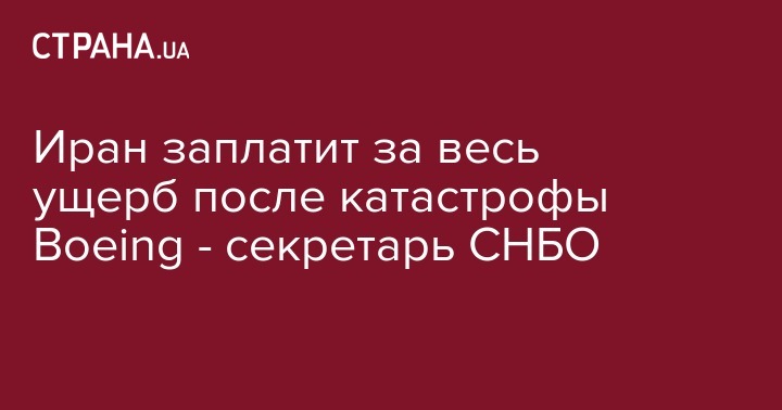 Иран заплатит за весь ущерб после катастрофы Boeing - секретарь СНБО