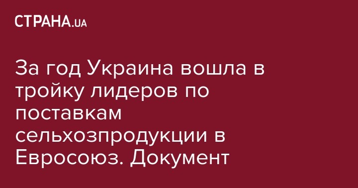 За год Украина вошла в тройку лидеров по поставкам сельхозпродукции в Евросоюз. Документ