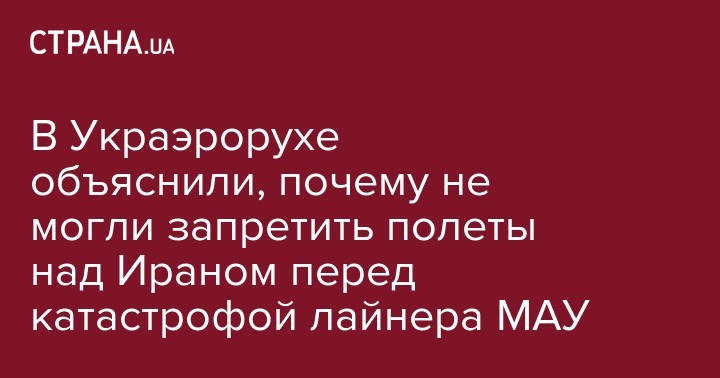 После того, как многие СМИ Украины опубликовали претензии и обвинения в адрес Украэроруха из-за того, что госпредприятие не запретило полеты украинских самолетов в воздушном пространстве Ирана, компания выступила с заявлением и объяснением своей позиции.