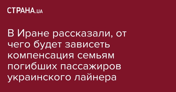 "Размер компенсаций семьям жертв катастрофы украинского самолета будет зависеть от урегулирования между Ираном и Украиной", - заявил представитель Иранской организации гражданской авиации Хасан Резайефар.