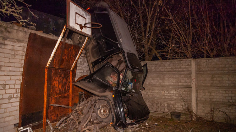 ЧП произошло около 00:30 на улице Криворожской. По предварительным данным, пьяный водитель ехал по улице Криворожской в сторону улицы Киевской. После того, как он зацепил Dacia, Nissan подбросило вверх, авто залетело на бетонные блоки, которые и стали своеобразным трамплином, отправившим автомобиль в дальнейший полет. В итоге Nissan перелетел через гараж и повис на заборе частного дома.