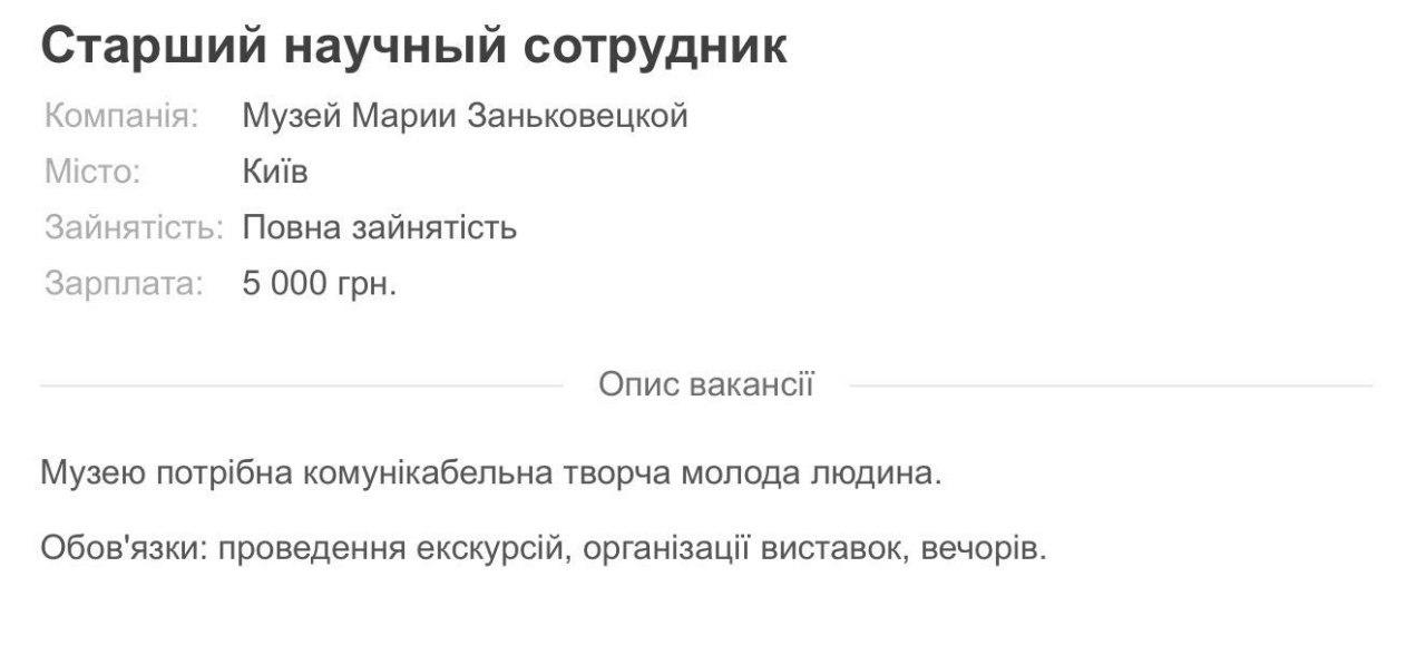 Зарплаты рядовых работников в Минкульте меньше зарплат министра культуры Владимира Бородянского и замов в 100 раз. Так, и в Киеве, и в регионах заработные платы работников музеев, кассиров, библиотекарей составляют 3500-5000 грн. Об этом свидетельствуют сайты вакансий.