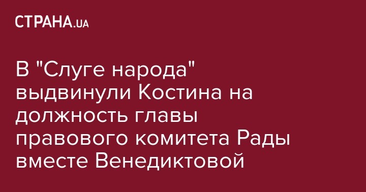 В "Слуге народа" выдвинули Костина на должность главы правового комитета Рады вместе Венедиктовой