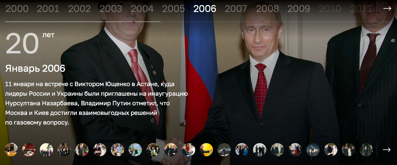 Первая порция кадров - с 2000 по 2005 год - появилась накануне Нового года. В этот период времени у президента России было много встреч с тогдашним украинским лидером Леонидом Кучмой. Вместе они несколько раз посещали Крым, гуляли там и пили вино, праздновали общие дни рождения, посещали рыбалку.