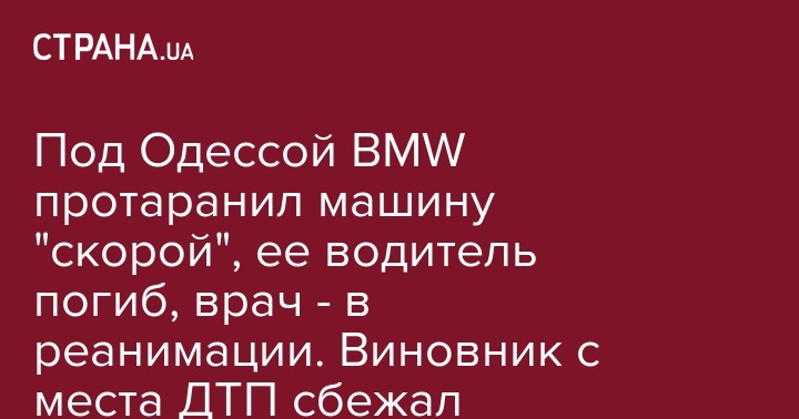 Под Одессой BMW протаранил машину "скорой", ее водитель погиб, врач - в реанимации. Виновник с места ДТП сбежал