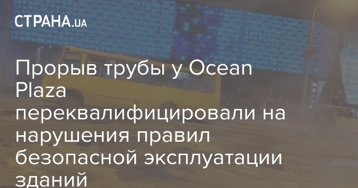 Киевская прокуратура решила изменить квалификацию уголовного производства по факту аварии теплосети на ул. Антоновича возле ТРЦ Ocean Plaza на статью о нарушениях правил безопасности эксплуатации зданий. Об этом сообщает пресс-служба прокуратуры столицы.