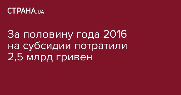 Общая сумма субсидий, предназначенных для компенсации затрат семей на оплату жилищно-коммунальных услуг в Украине, за последние полгода составила 2 млрд 479 млн грн.