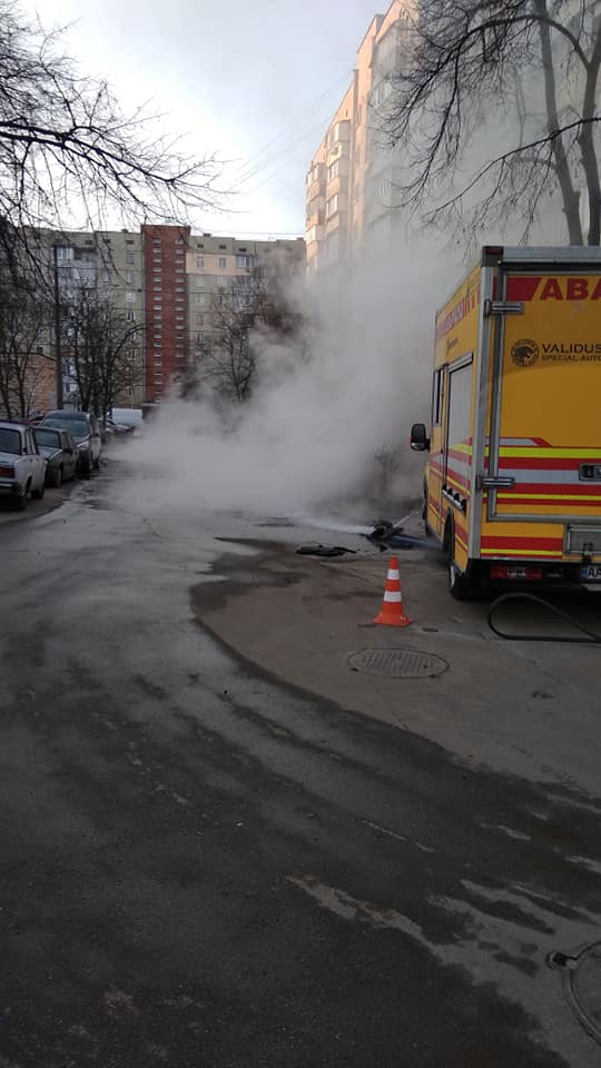 В Киеве в микрорайоне Виноградарь случился прорыв теплосетей в среду, 15 января. В результате на улицу вылился кипяток.