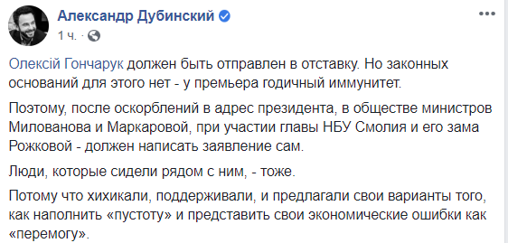 Дубинский потом прямо призвал Гончарука написать заявление об уходе.