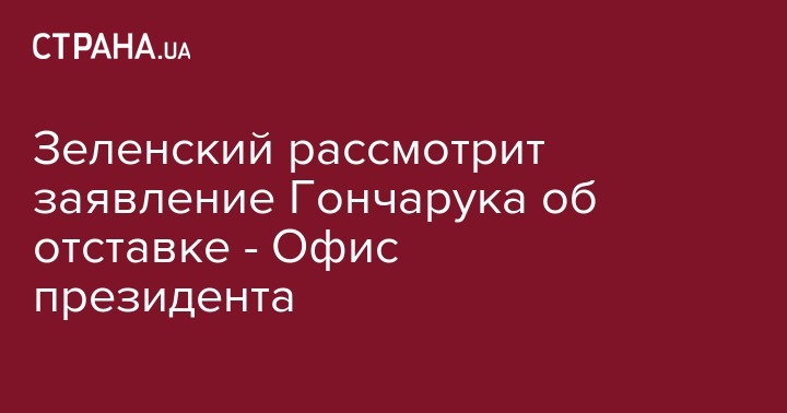 Зеленский рассмотрит заявление Гончарука об отставке - Офис президента