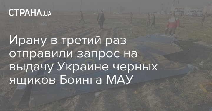 Офис Генерального прокурора в третий раз направил запрос Ирану о международно-правовой помощи для того, чтобы получить доступ к бортовым самописцам (черным ящикам) с украинского самолета МАУ, который упал под Тегераном вследствие попадания ракеты военного формирования КСИР в борт лайнера. На предыдущие два запроса иранское руководство не ответило. Об этом сообщает пресс-служба Офиса Генпрокурора.