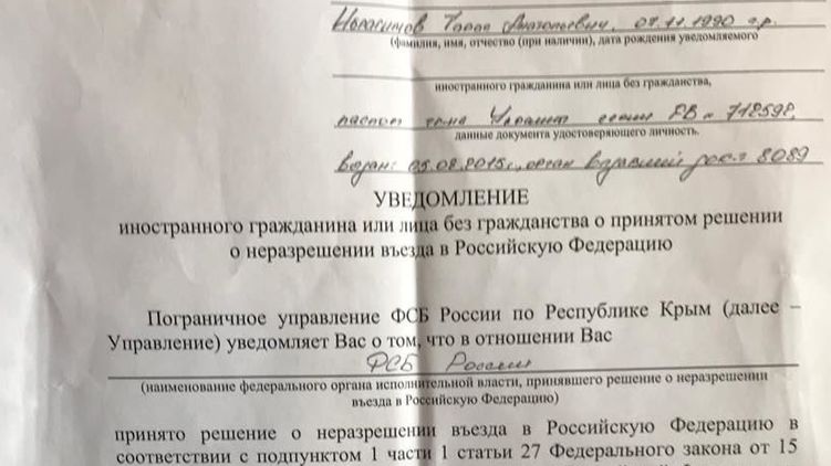 "До 2054 года ФСБ запретила мне въезд в Россию и оккупированный Крым. "Вы же догадываетесь почему?, - спрашивает меня пограничник ФСБ. - Я знаю. "Ну и почему?" - Личная неприязнь", - пишет Ибрагимов.