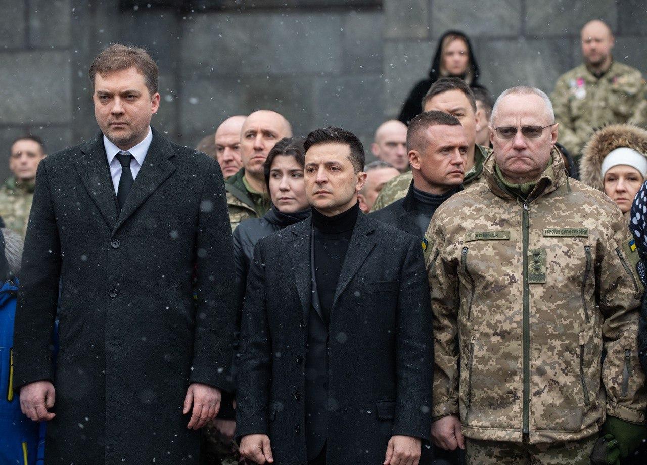 В понеедльник 20 января президент Украины Владимир Зеленский принял участие в мероприятиях у здания Министерства обороны в память о военнослужащих, погибших в боях за донецкий аэропорт.