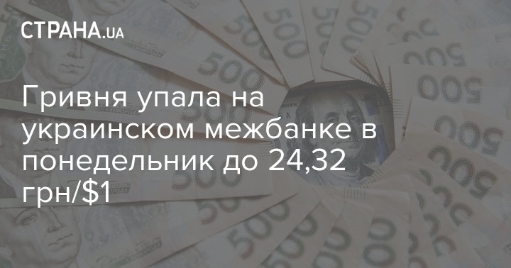 Гривня упала на украинском межбанке в понедельник до 24,32 грн/$1