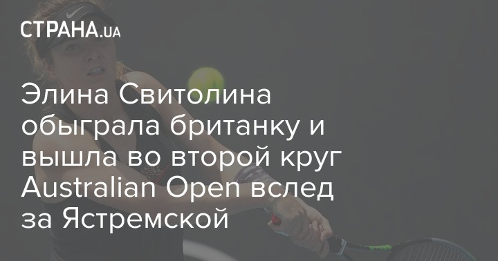 Как сообщает пресс-служба Федерации тенниса Украины в Facebook, на старте Открытого чемпионата Австралии Свитолина ожидаемо победила 23-летнюю британку Кэти Бултер.