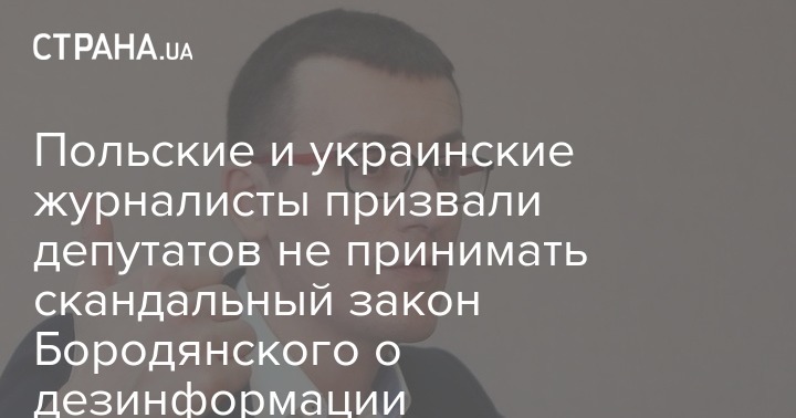 "Мы, польские и украинские журналисты, обращаемся к украинской власти не внедрять в украинское законодательство нормы, предусматривающие штрафы и даже тюремное заключение для журналистов. Внедрение этих норм содержится в законопроекте о борьбе с дезинформацией, который представил 20 января министр культуры, молодежи и спорта Украины Владимир Бородянский", - говорится в сообщении.