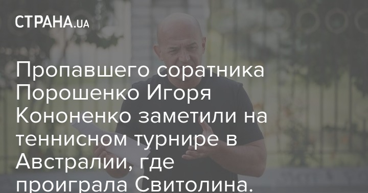 Пропавшего соратника экс-президента Украины Петра Порошенко Игоря Кононенко засекли на теннисном турнире Australian Open, где первая ракетка Украины Элина Свитолина разгромно проиграла испанке Габриэле Мугуруси в двух сетах.