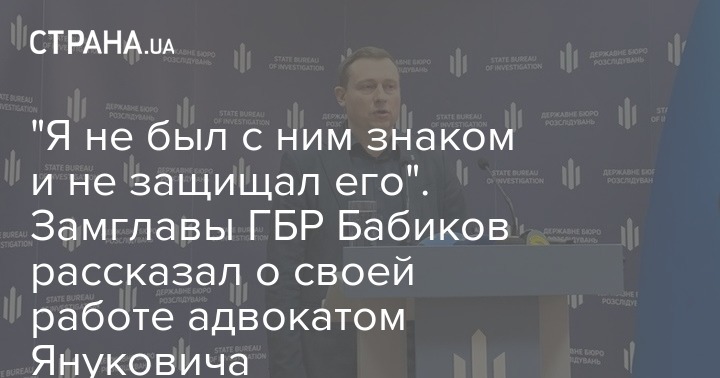 Первый заместитель Государственного бюро расследований Александр Бабиков не был адвокатом Януковича в судебных делах о преступлениях на Майдане в 2013-2014 годах. Об этом сам Бабиков заявил на брифинге, отвечая на вопросы журналистов.