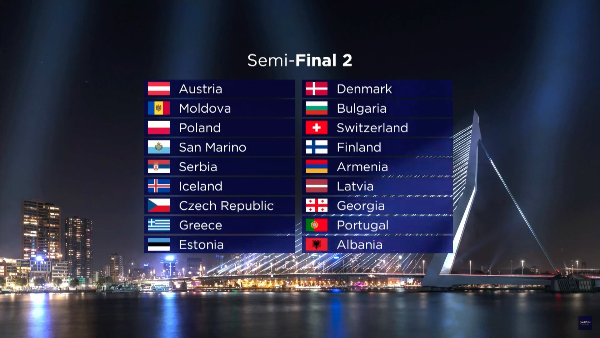 Кроме того, что страны-участницы песенного конкурса узнали, в каком полуфинале прозвучат их выступления, жеребьевка также определила в какой половине полуфинального шоу они покажут свой номер.