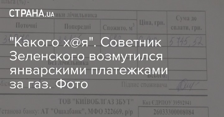 Платежка советника президента Украины за газ в январе. Фото: Илья Новиков