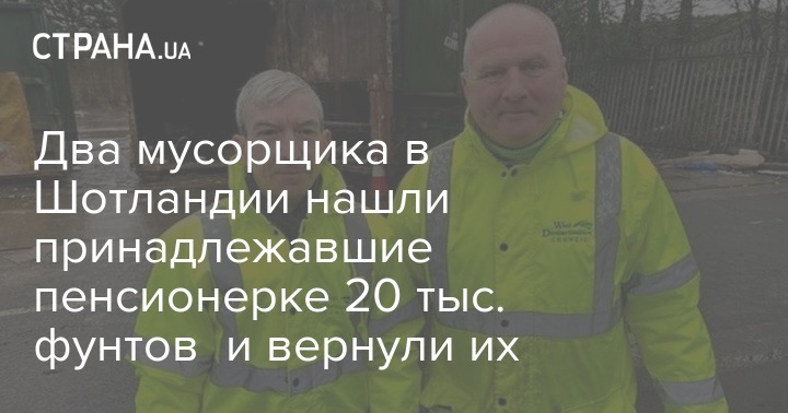 Двое мусорщиков из Шотландии нашли в мусорных отходах 20 тысяч фунтов (около 26 тыс. долларов), которые пенсионерка хранила в старых жестяных банках. Деньги по ошибке выкинула ее дочь во время уборки.