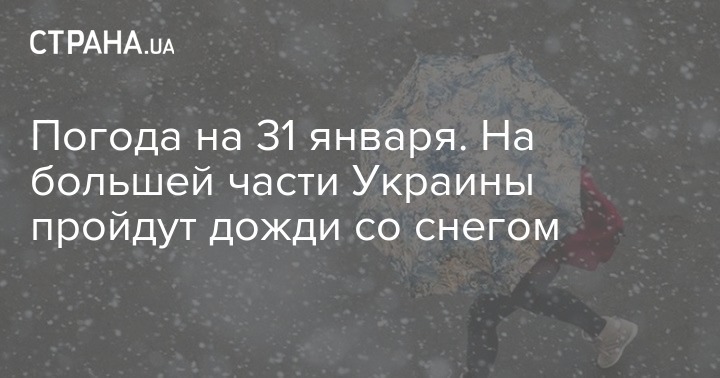 В пятницу, 31 января, большую часть Украины накроет дождем с мокрым снегом. Сухо и солнечно будет лишь в Днепропетровской, Запорожской, Херсонской, Донецкой и Луганской областях. Об этом сообщает Укргидрометцентр.