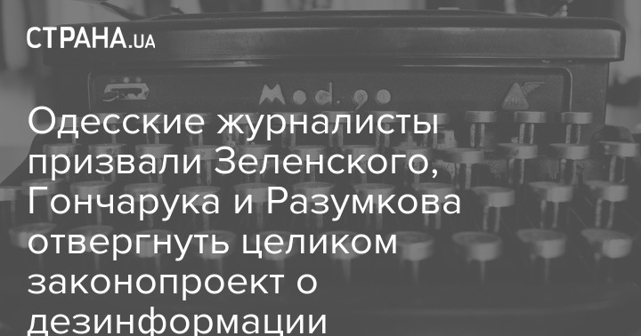 Журналисты Одессы написали обращение к президенту Украины Владимиру Зеленскому, председателю Верховной Рады Дмитрию Разумкову и премьер-министру Алексею Гончаруку, в котром раскритиковали законопроект "о дезинформации".