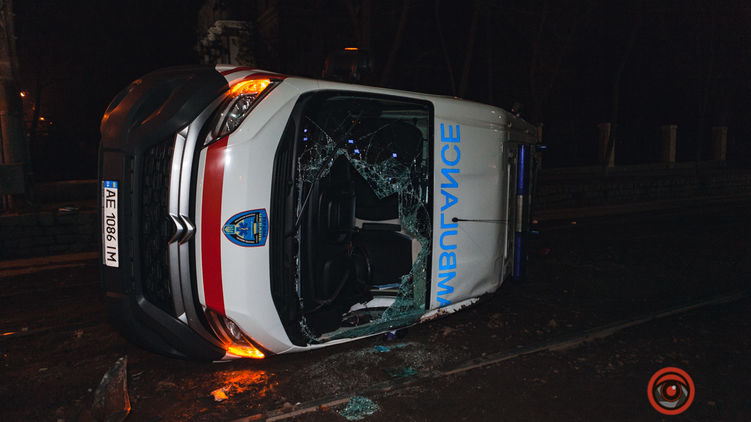 На видео попало ДТП, как легковушка уложила на бок скорую помощь в Днепре