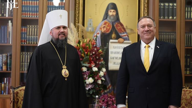 Митрополит Православной церкви Украины Епифаний встретился с государственным секретарем Соединенных Штатов Америки Майком Помпео. Встерча была в Киеве, куда Помпео прилетел с рабочим визитом