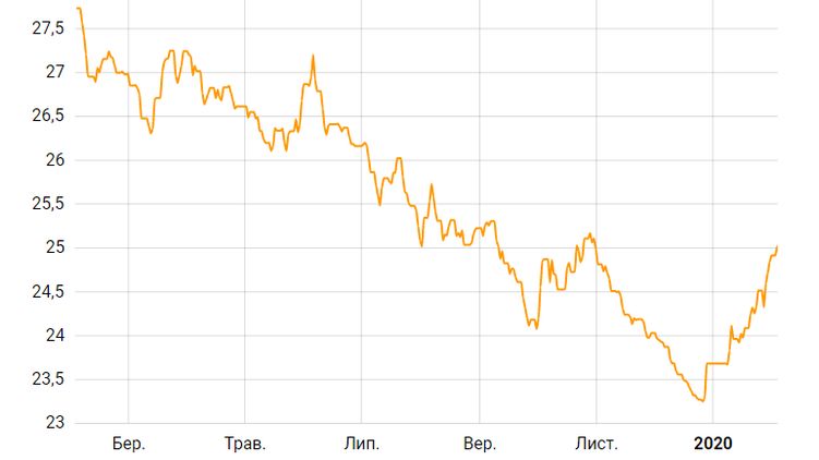 В пятницу, 31 января, Нацбанк Украины опубликовал обзор макроэкономических процессов и монетарной политики за январь 2020 года, согласно которому украинская национальная валюта подешевела по отношению к доллару США на 1 гривну 23 копейки, или 5,19% - с 23,69 до 24,92 грн/долл.