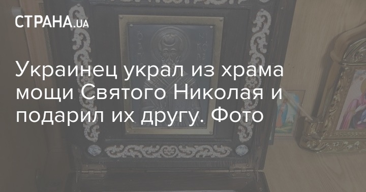 Украинец украл из храма мощи Святого Николая и подарил их другу. Фото