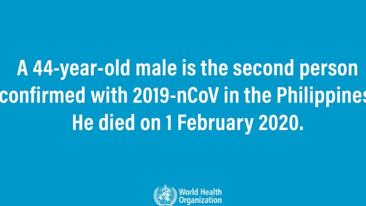О смерти отделение ВОЗ сообщило на своей странице в Twitter. Смерть произошла 1 февраля. Умерший был вторым подтвержденным человеком на Филиппинах с новым коронавирусным 2019-nCoV. Он скончался 1 февраля 2020 года.