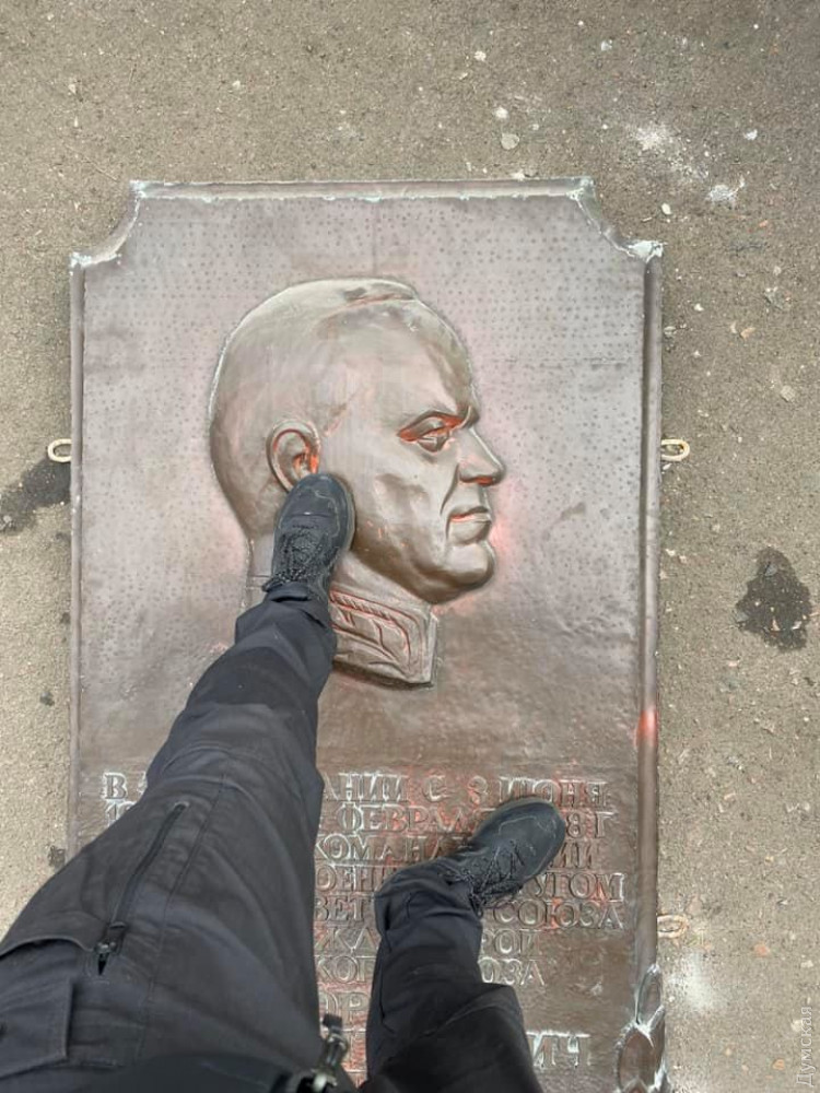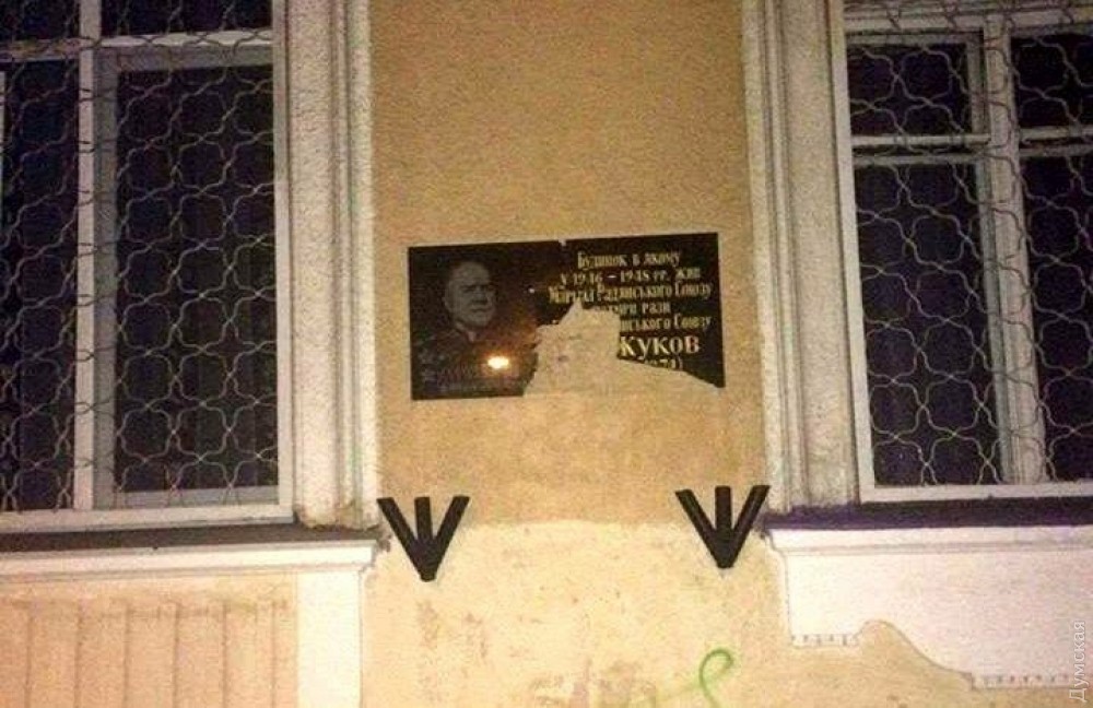 4 февраля сняли доску с Жуковым со стены дома № 62 по улице Новосельского, где находится общежитие Одесского национального университета. В этом здании с 3 июня 1946 года по 4 февраля 1948-го маршал Пообеды работал, занимая пост командующего Одесским военным округом.