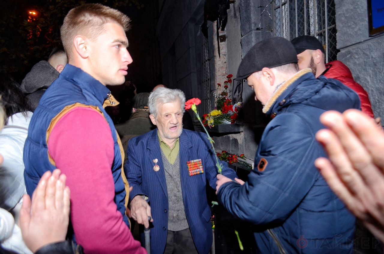 Им пытались помешать несогласные под руководством депутата облсовета Богдана Гиганова, но до потасовки дело не дошло. Противостояние ограничилось словесной перепалкой. Барьельеф в итоге сняли, погрузили в машину и увезли.