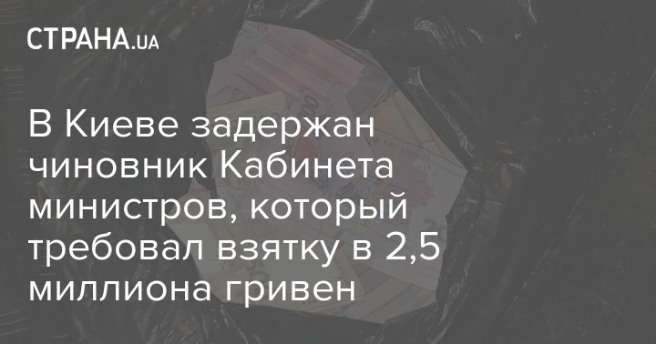 Киевские правоохранители задержали начальника одного из управлений секретариата Кабинета министров Украины при получении взятки. Он требовал 2,5 миллиона гривен за подписание актов выполненных работ.