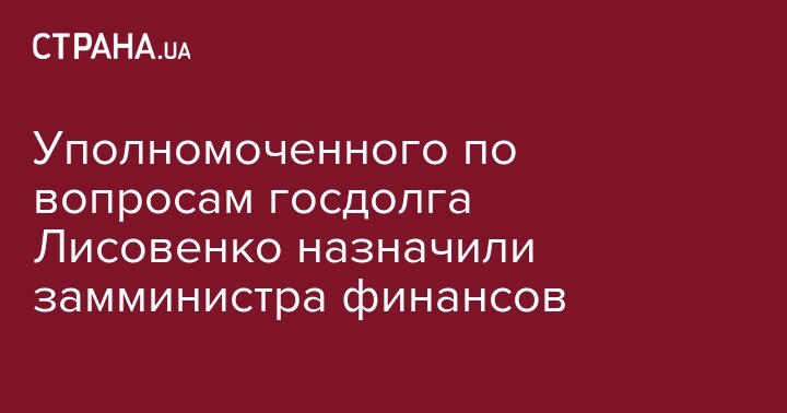 Уполномоченного по вопросам госдолга Лисовенко назначили замминистра финансов