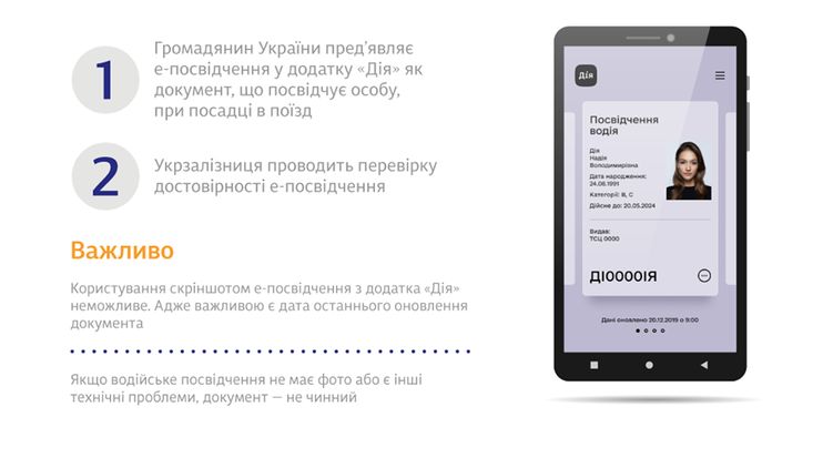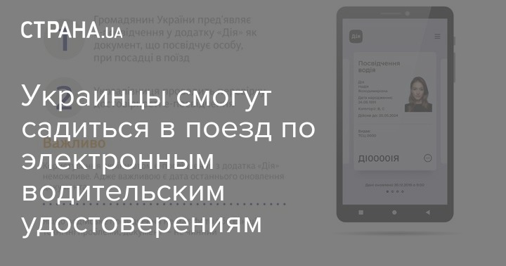 После презентации государственного мобильного приложения "Дія" ("Действие") Укрзализныця заявила, что украинцы смогут совершать посадку в поезд на основании электронного водительского удостоверения.