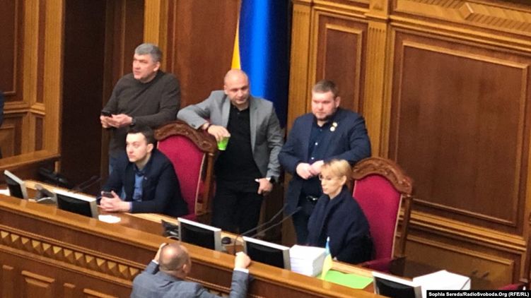 Вчера, 6 февраля, во время принятия законопроекта о земле в сессионном зале нардепы блокировали трибуну и устраивали легкие потасовки. Чтобы избежать блокировки трибуны, сегодня, 7 февраля, с утра члены правящей фракции "Слуга народа" дежурят возле трибуны и президиума Верховной Рады.