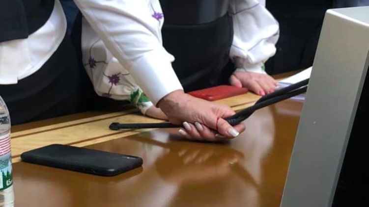 На место спикера Дмитрия Разумкова встала лидер "Батькивщины" Юлия Тимошенко. Она так крепко держала микрофон спикера, что до крови порезала руку. Позже нардеп от "Батькивщины" Михаил Цымбалюк извинился перед Разумковым за сломанный микрофон и блокирование трибуны.