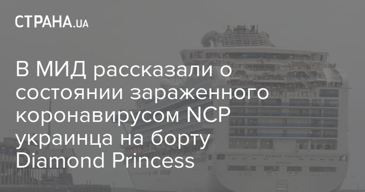 В МИД рассказали о состоянии зараженного коронавирусом NCP украинца на борту Diamond Princess