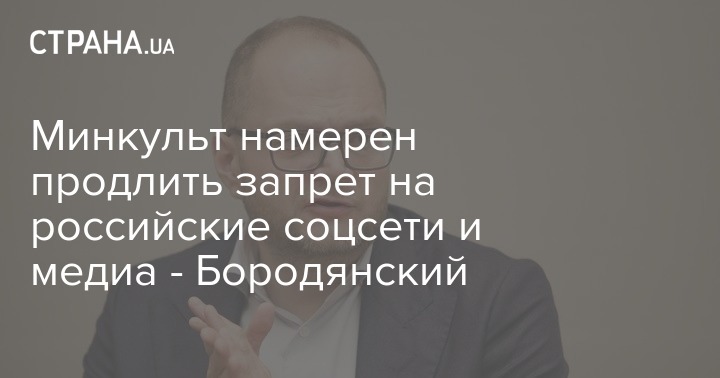 Глава Министерства культуры, молодежи и спорта Владимир Бородянский собирается инициировать продление запрета на доступ к российским медиа-ресурсам и социальным сетям.