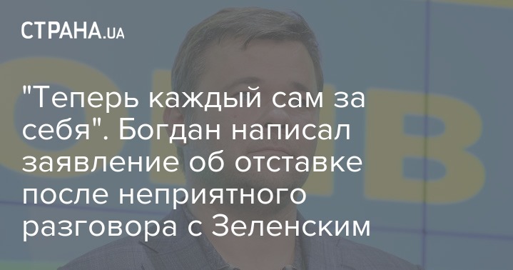 "Теперь каждый сам за себя". Богдан написал заявление об отставке после неприятного разговора с Зеленским