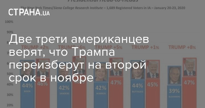 Две трети американцев верят, что Трампа переизберут на второй срок в ноябре